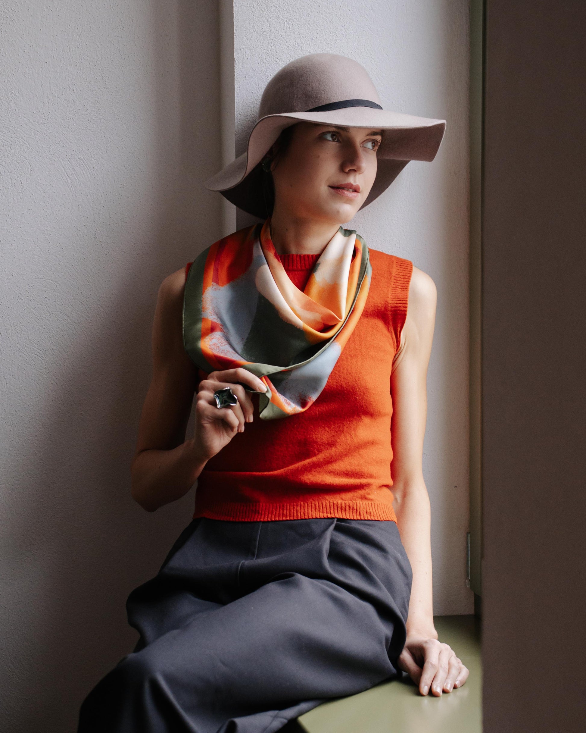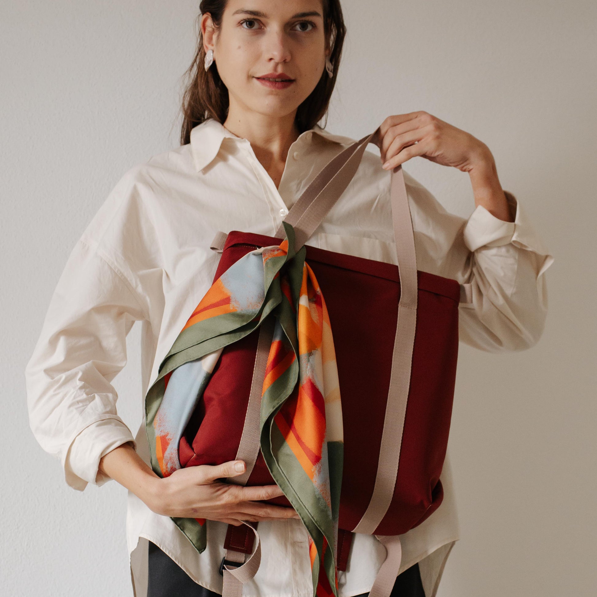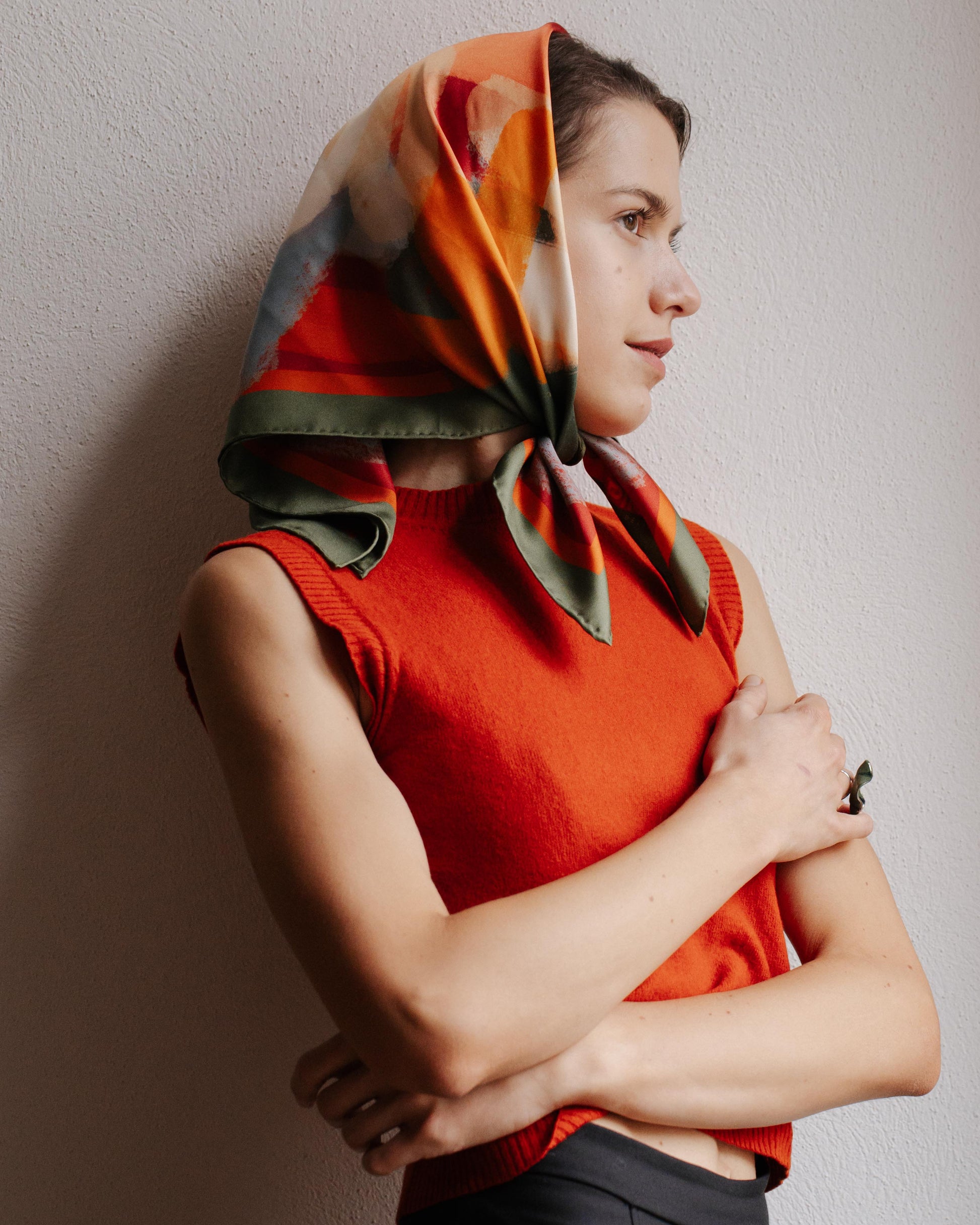 A 65×65 cm-es méretnek köszönhetően sokoldalúan viselhető: fejkendőként, nyakban, csuklón vagy akár táskára kötve. Egy időtlen, karakteres kiegészítő, amely bármely öltözéket különlegessé tesz.