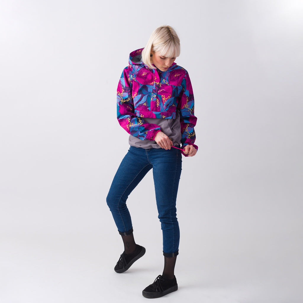 The elastic drawstrings at the hip are meant to protect you from the wind even when you're moving.