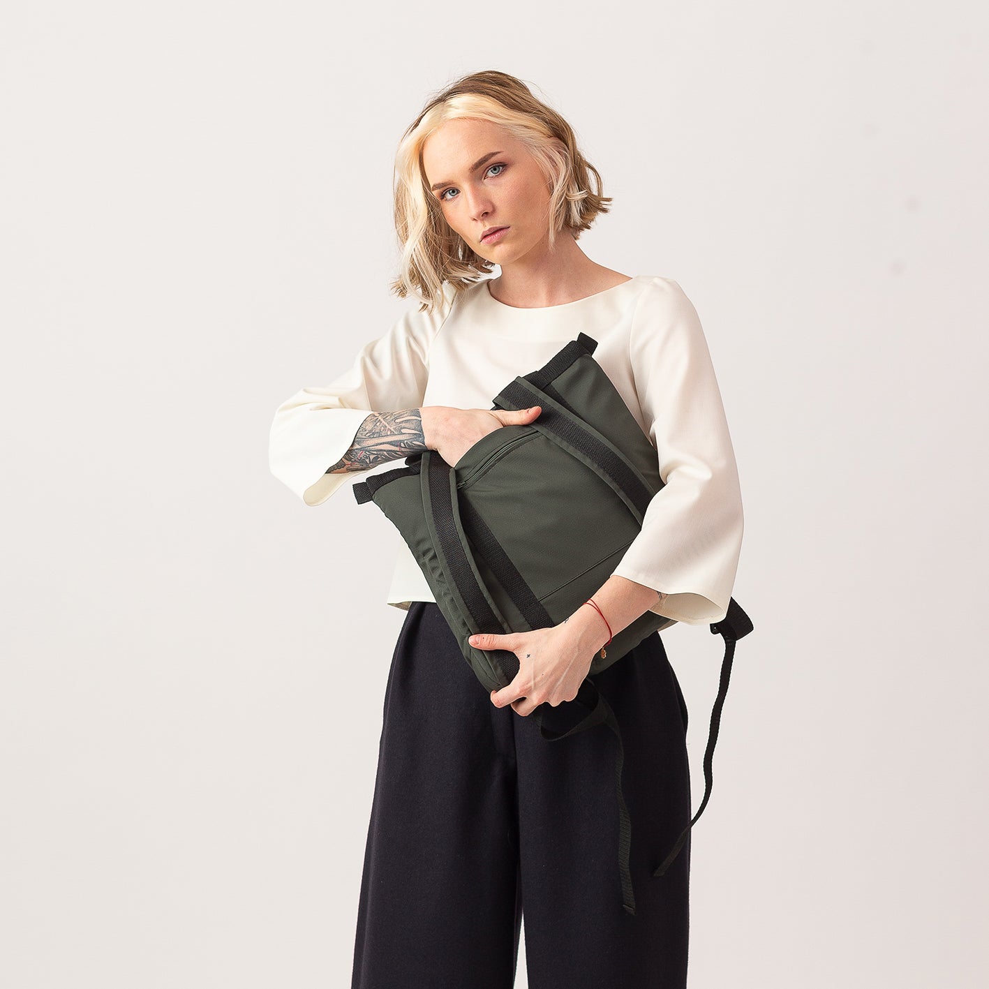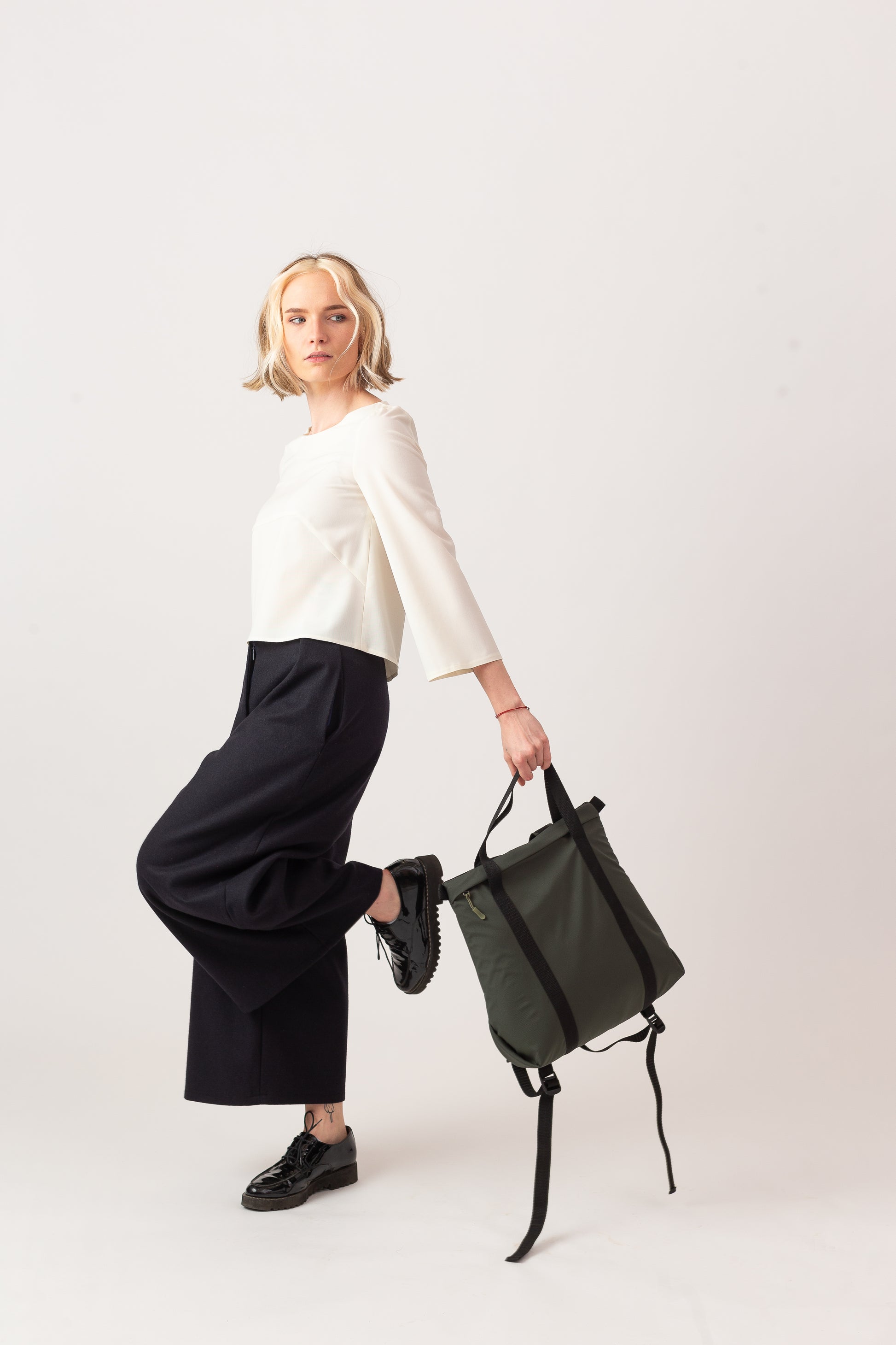 • Inside: 1 zippered + 1 open pocket (15 × 22 cm)